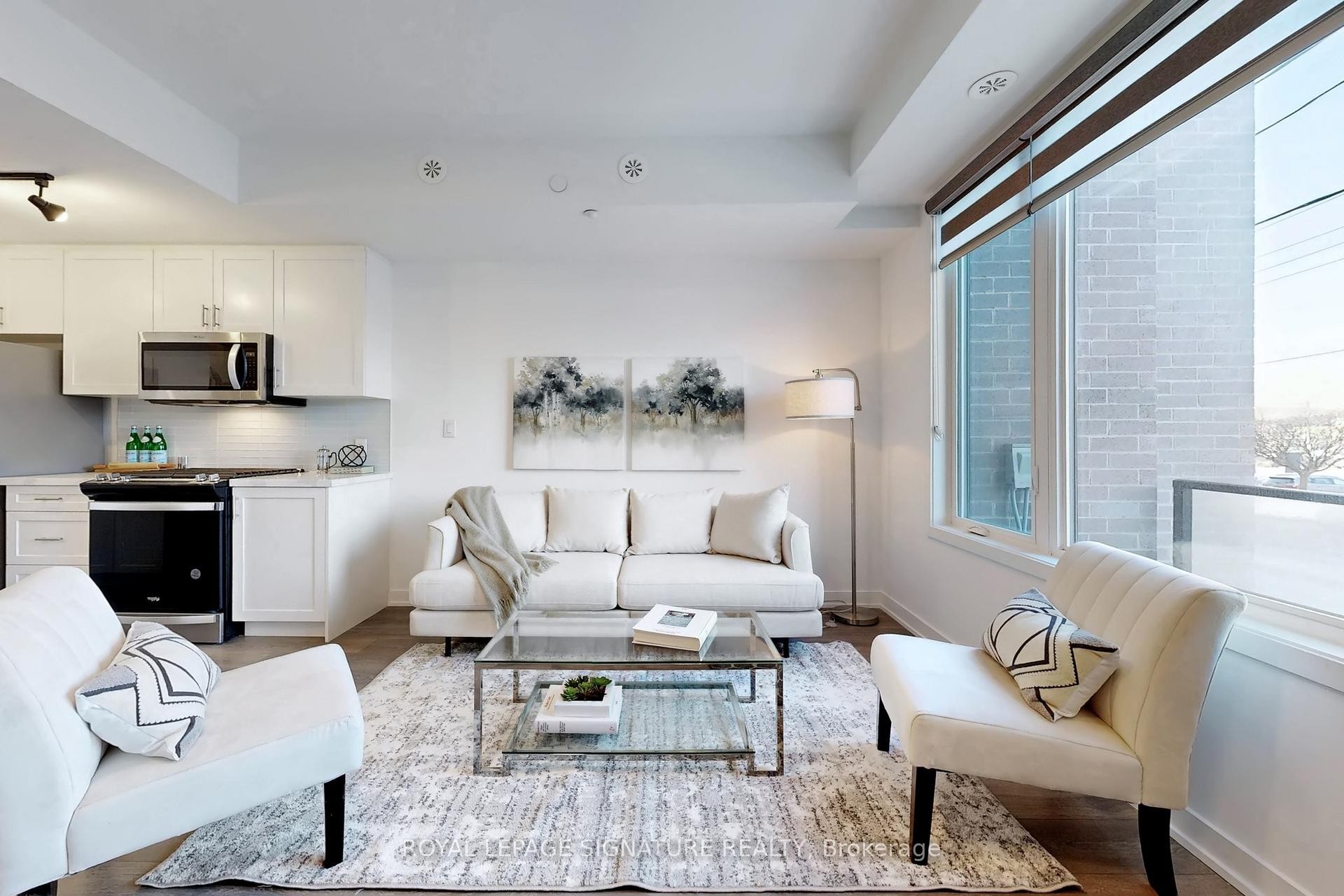 Under One Year New, spacious modern bright 2 story Townhouse. Over 1,135 sq.ft. Open Concept living and dining room with walk out to balcony. Huge Kitchen Island, Stainless Steel Appliances, Backsplash, Quartz countertop. Main floor powder room, storage room. Laminate floors throughout. All existing light fixtures and all existing custom window blinds included. One Parking and Locker Included. Fantastic location, TTC at your front door, shopping, minutes to Hwy 404, 401, Eglinton LRT, Eglinton Square Shopping Center, Shops at Don Mills plaza, parks, schools, etc.